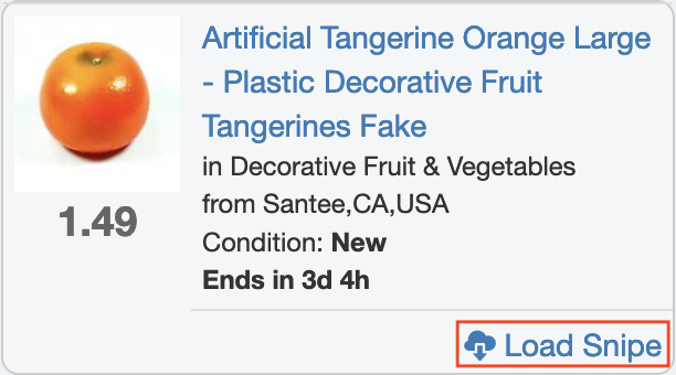 From our Search Results tab Fast Perform a search from the top of your Dashboard on any page that shows your auctions. For the auction of interest, click Load Snipe.
