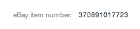Entering manually Slow Fetch the item number by double-clicking the 12-digit item number in the eBay URL or from the bottom-right-hand corner of the eBay page. Double-click the item number and click CTRL-C, which puts it into your paste buffer. Then put it into the Add Snipe box: